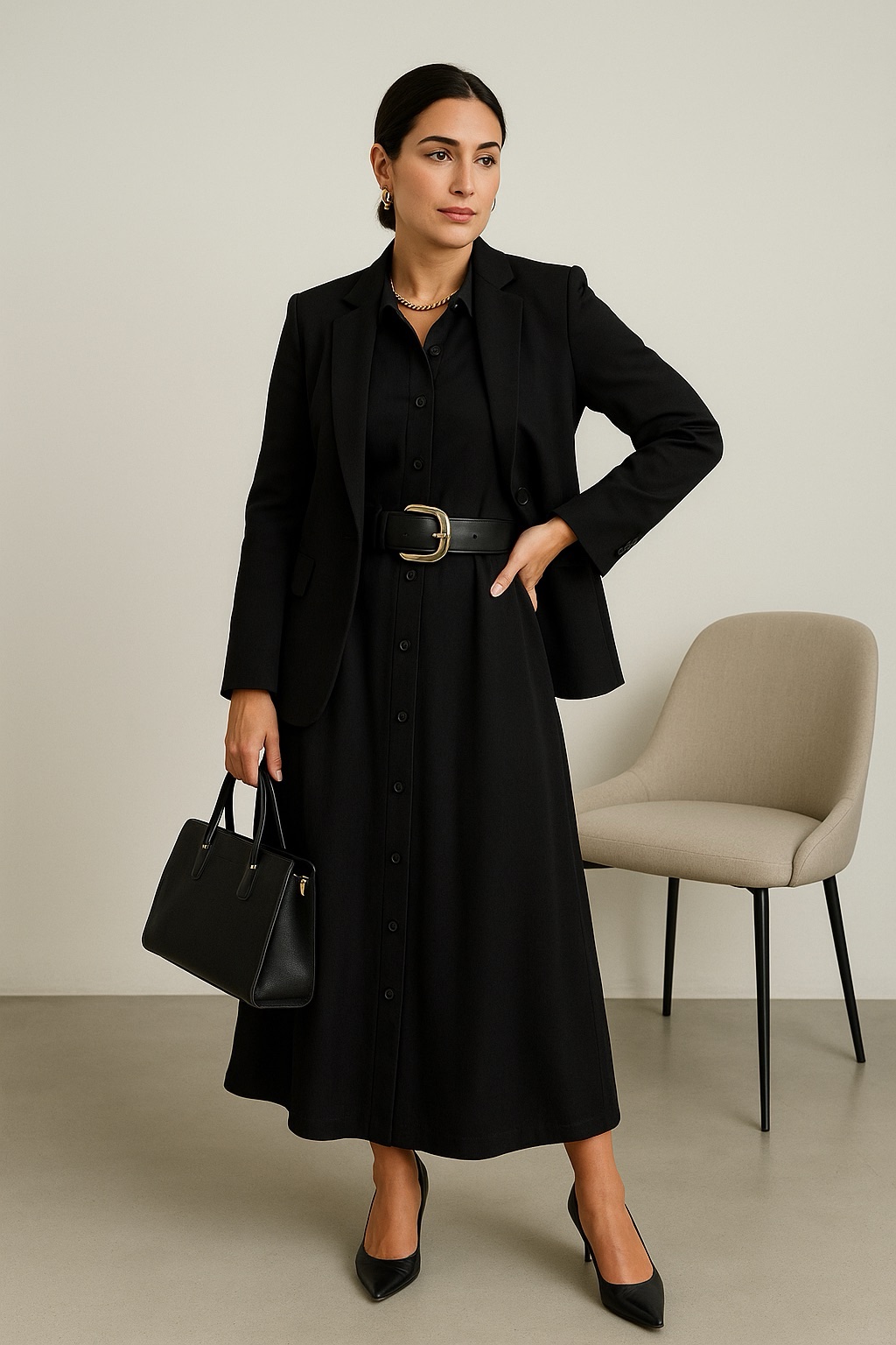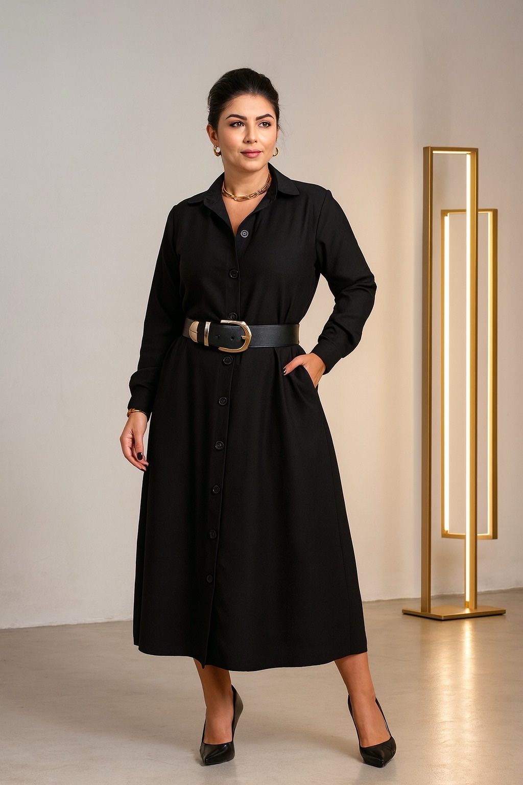 O Vestido Chemise Preto é a definição de versatilidade e elegância atemporal. Confeccionado em tecido leve e confortável, ele possui modelagem soltinha que valoriza diferentes tipos de corpo, mangas 3/4 com possibilidade de ajuste dobrado e fechamento frontal por botões, trazendo praticidade e estilo.